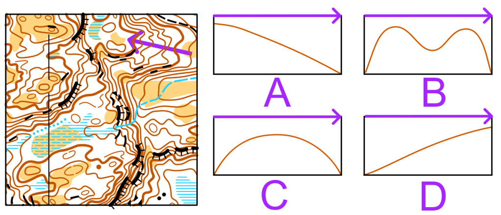 You’ll see a small map. On it will be a purple line arrow. You then have 4 height profile diagrams. You need to pick which one matches the purple line on the map.